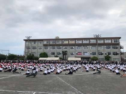開会式、準備運動です。朝からたくさんの方のご来校があり、本当にありがとうございます。