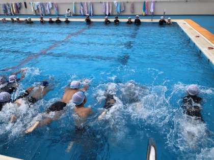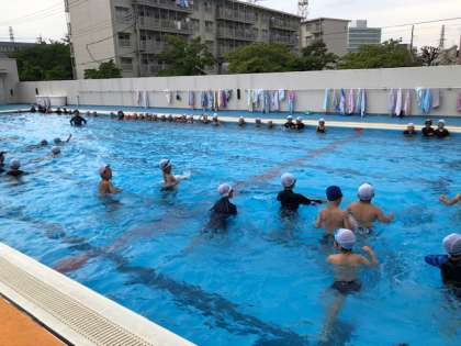 3年生は2回目の水泳です。水の中でのかけっこやバタ足。それぞれの上手な人をみんなが拍手で褒め称えていました。
