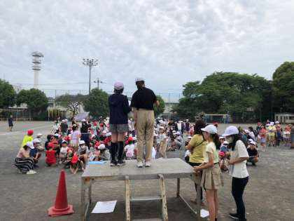 給食後はたてわり班での「ふれあいタイム」です。ミドルということで、前半は集会委員が3択クイズ、後半は班ごとに決めた遊びです。終わったあとは班長が振り返りをしています。