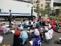 「お待たせしました。校庭で遊べます。」と放送すると、2階の教室から「やったぁ」の...