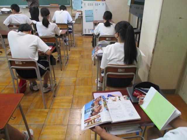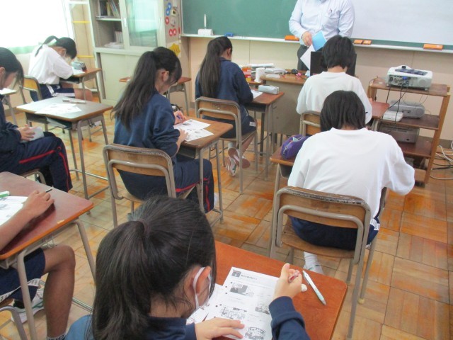 写真は7組の英語の、3年生の数学、1年生の英語、2年生の理科の授業の様子です。