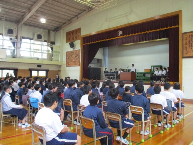 陵南中学校の全員の生徒が、とても立派な態度で総会に臨んでいました。