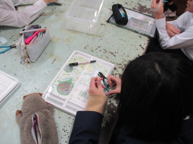 2年生の技術では、同線の皮むきをニッパーを使って行っていました。