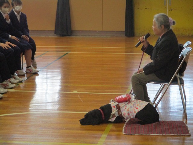 目の見えない生活のこと、盲導犬のことなど、生徒の質問に答えていただく形で、大変心に響く話でした。