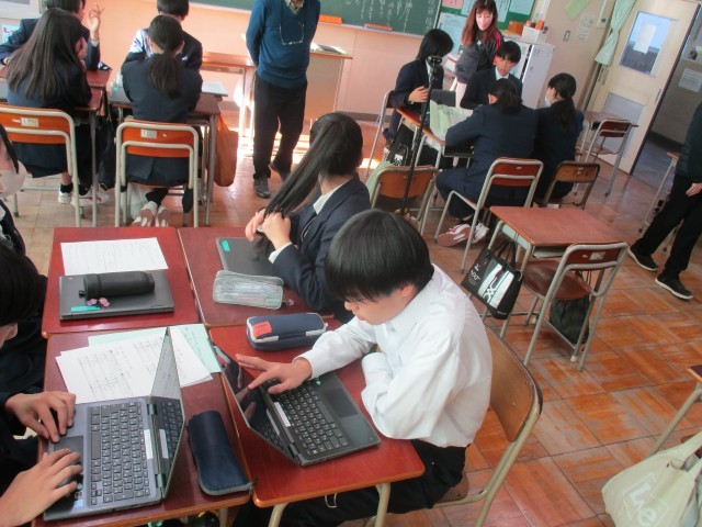 今日は、班ごとの行動計画を行っていました。班員と意見を交わしながら楽しそうに行っています。