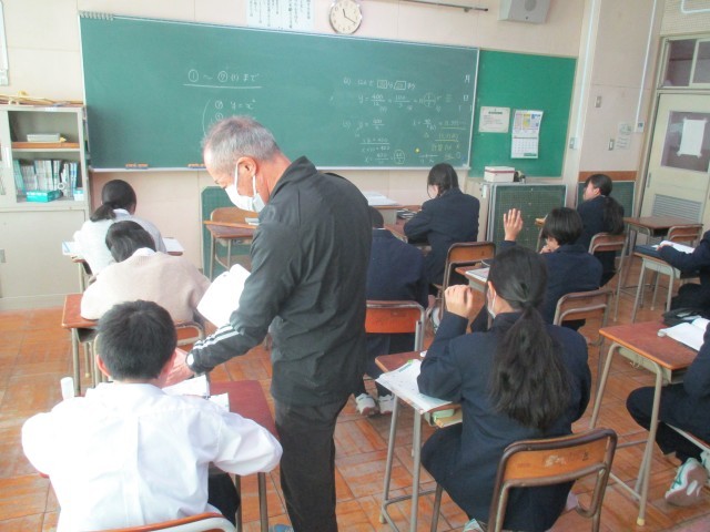 1年生の数学の授業では生徒たちが集中して問題を解いています。