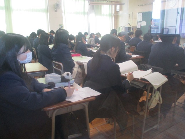 3年生の授業では、いよいよ迫ってきた入試に向け、集中し、気持ちも入っています。