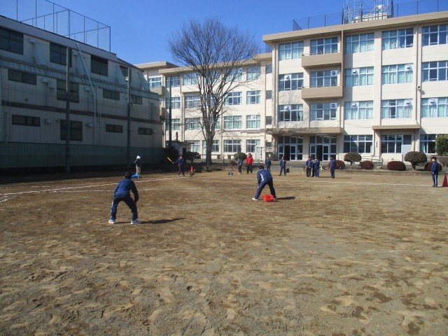 7組は体育の時間で、「ティーボール」を行っています。各チームとも楽しそうです。
