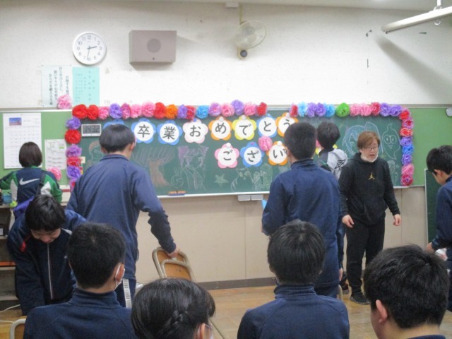 本日の午後、5,6校時には7組の「3年生を送る会」を行いました。