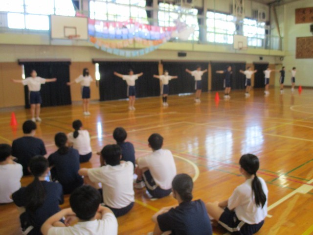 3年生の体育では「ラジオ体操」を行っています。