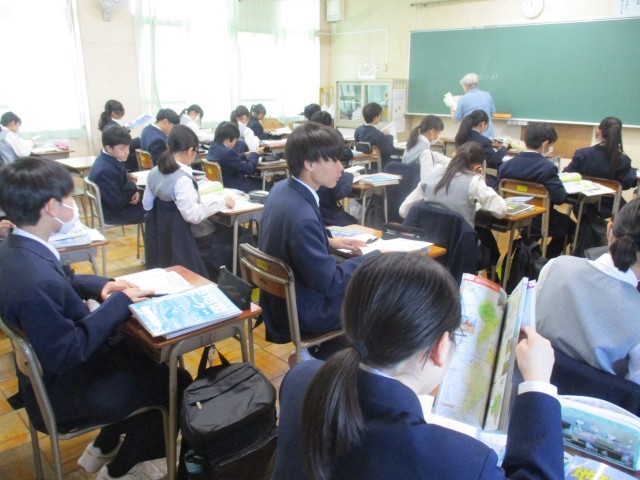 1年生の社会、2年生の英語、 7組の家庭科の授業の様子です。