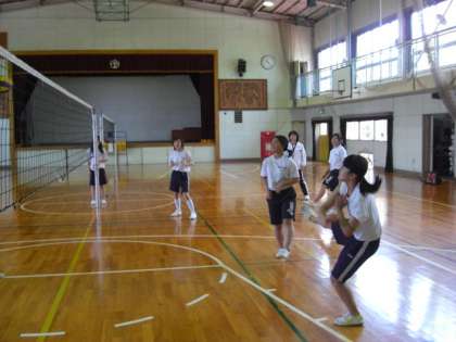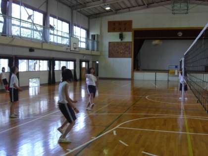 女子は、体育館でバレーボールをやっています。バレーボールは、見た目より難しく、終始、バレーボール部の人たちがクラスをリードしていました。
