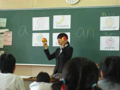教育実習生の石川先生が、研究授業を行いました。ピクチャーカードと果物の模型の活用、フルーツバスケットのゲームなど、1時間があっという間に過ぎてしまいました。