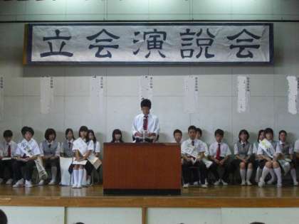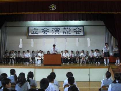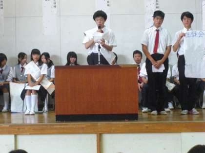 本年度、7名の人たちが、生徒会役員に立候補しました。理想の陵南中学校に近づけるため、自主的に立候補した人たちばかりです。皆さんの協力があって、リーダーシップが発揮されます。みんなで協力して、理想の陵南中学校を創っていきましょう。