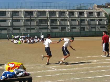 1,2校時に、1年生と7組の生徒の体育大会の練習がありました。大縄跳び、全員リレーなど、学年種目を中心に練習しました。リレー競技では、バトンパスが大切になりますが、生徒たちはまったく問題なくこなしていました。