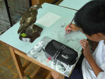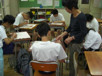 音楽の授業では、2年5組が、「明日へ」を歌っていました。「どこまで行けるか分からないけど 僕らは走り出す 明日へ」という歌詞が好きなので背中がぞくぞくしました。1年3組の美術の時間は、タカのデッサンに熱中している生徒を見かけました。線を引いては消し、何度も何度も描いていました。7組の家庭科では、生地の刺しゅうをしていました。細かいところまで丁寧に作業しており、「粘り強いな」と思いました。