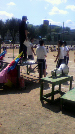 各クラスの体育委員が、跳んだ回数を担当の先生に報告します。