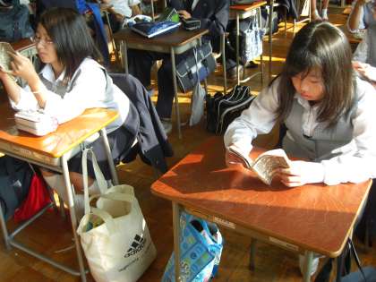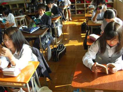 朝の10分間、生徒たちは、陵南タイムで読書を行っています。朝読書は、落ち着いた雰囲気で1日のスタートを切れるようになります。また、読書は、いろいろな人の考え方に触れて、自分の生き方にも影響を与えてくれます。保護者、友だち、先生から、いろいろなことを学ぶと思いますが、読書からもたくさんのことを学ぶことができます。1年2組の人たちも多いに学んでいるようでした。