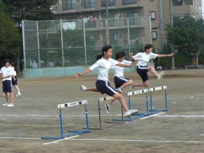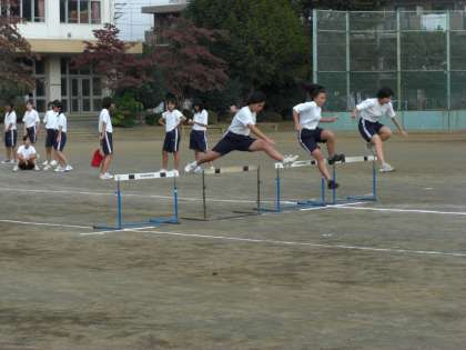 ハードルの授業を参観しました。得意な人も苦手な人も、みんな一生懸命にハードルを跳んでいました。跳ぶときは真剣に取り組み、待っている間はカメラにポーズまでとってくれました。けじめと笑顔のあふれる授業を参観させてもらいました。