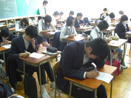 リスニングのテストを行っています。生徒たちの真剣さが伝わってきます。テスト後は、担当の先生から大事なポイントを説明してもらいます。生徒たちは、テストのとき以上に真剣に聞いていました。