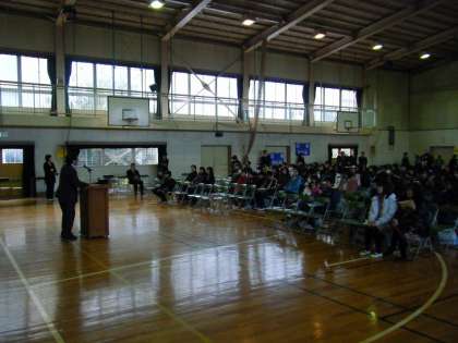 先週の土曜日、授業公開の後、体育館で新入生保護者説明会が行われました。新入生と保護者の皆様、ご苦労様でした。