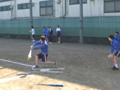 校庭でソフトボールをしています。強風の中、思いっきり体を動かしていました。応援する生徒たちも、大きな声を出していました。3年生のみなさん、明日の都立入試も、この調子で、ぶつかっていってください。