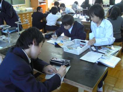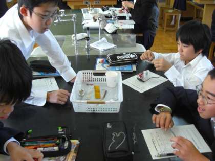 物質の世界の単元で、金属と非金属の違いを調べています。電流が流れるかどうかなどを確認しています。ちなみに物質と物体の違いは何でしょう。すぐに答えられる人は、かなり理科好きな生徒だと思います。