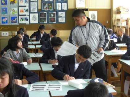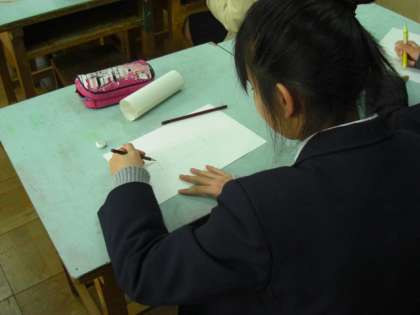 紙を丸めたものをデッサンしています。頭の固い私にとっては、想像を絶するデッサンです。「紙を丸めてはいけない」という固定観念がそう思わせてしまうのです。やはり、頭は柔軟でなければなりませんね。生徒たちは、柔軟な発想で、真剣に取り組んでいました。