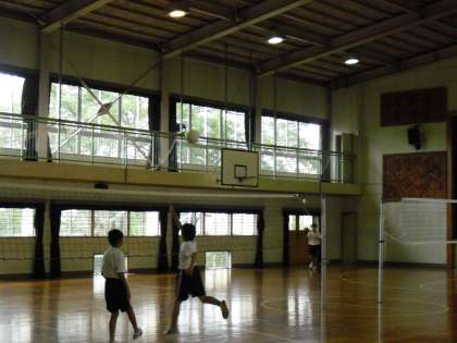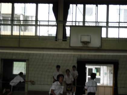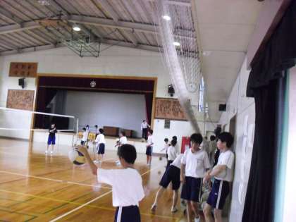 1,2年生は授業です。2年生体育、バレーボールです。スパイク(アタック)の練習をしています。