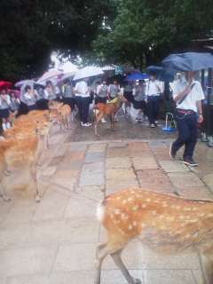 雨は降ったりやんだりだそうです。バス移動時にザーザー降っていたそうです。徒歩行動中は比較的楽なようです。