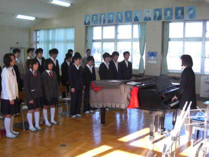 門倉先生の指導の下、生徒たちの歌声が響いていました。学芸発表会が、3月9日に延期になりました。テンションがやや下がり気味だと思いますが、もう一度、気持ちをリセットしてもらえればと思います。3年生にとっては、3月の発表会は卒業式モードに入っていますから、これまでとは一味違った発表会になるはずですよ。