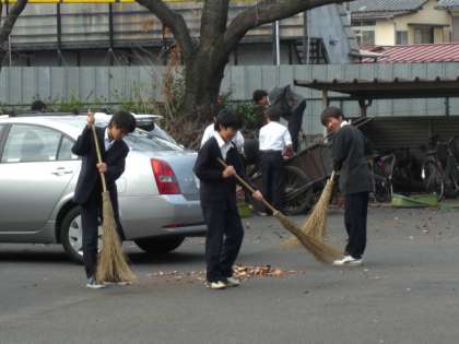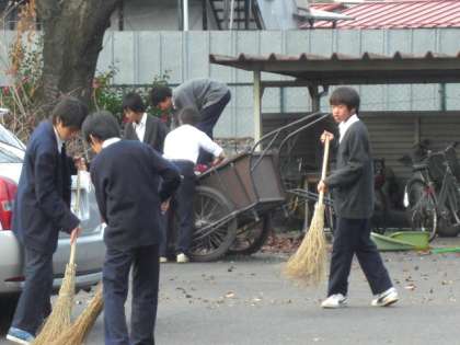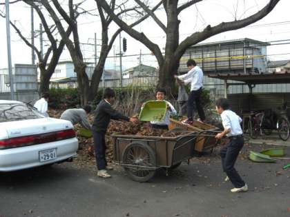 面談期間中、サッカー部は校内美化に取り組んでいます。ホウキやリヤカーの扱いも手馴れたものです。サッカーの練習だけでなく、清掃活動を取り入れているところが立派だと思います。