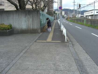 少し前までは、ものすごく大変な落ち葉集めでしたが、この頃は落ち葉が少ないため、何となく物足りなさを感じるようになりました。玄関周辺はとてもきれいになりましたが、ボランティアの生徒たちの後姿は何となくさびしそうでした。