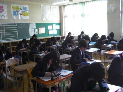 2年5組は、2学期末に道徳授業をやらせていただきました。そんなこともあり、今日はじっくり授業を参観させてもらいました。生徒たちは、先生が発問するとき、ワークシートに記入するとき、常に真剣に取り組んでいました。