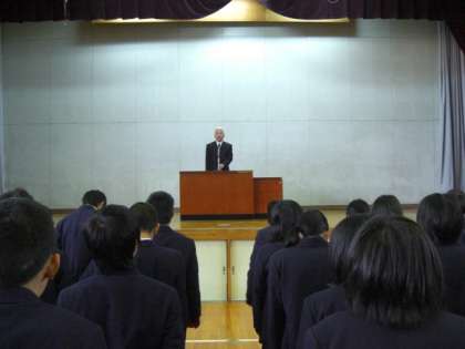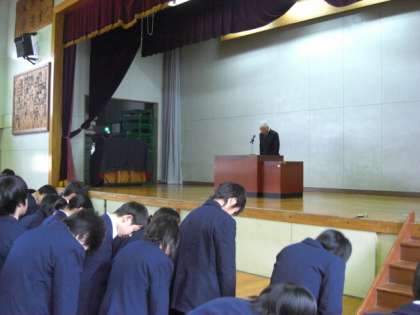 校長先生から、3年生には、「出願時にはテストのつもりで出かけること」、1、2年生には「生徒のやるべきことはまずは学習すること」というお話を聞きました。校長先生の燃えたぎるような熱い思いに、生徒たちは圧倒されていました。