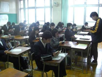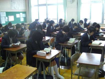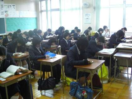 2年生の各教室をのぞくと、まるで図書館に来たようです。心臓の鼓動、息づかいが聞こえてきそうです。それぐらい緊張感が感じられます。教室をのぞくのも躊躇してしまいました。