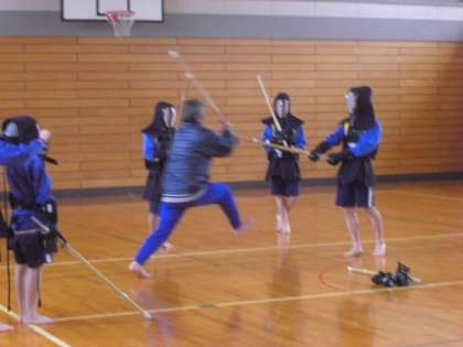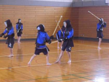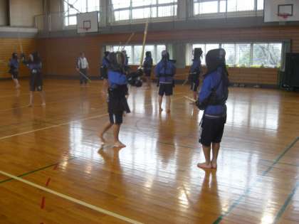 第二体育館で剣道の授業をしています。生徒たちの動きが、一段と早くなってきました。それにも増して、金子先生の動きの早さが飛びぬけていました。写真からも早さが伝わってきます。