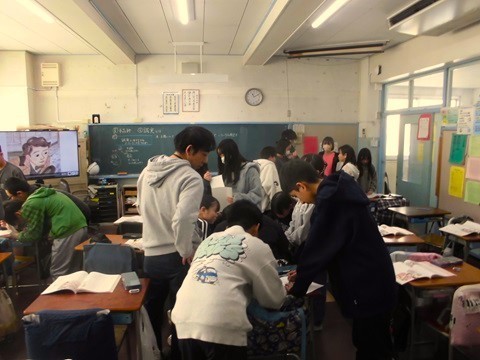 6年生の道徳「手品師」の授業です。