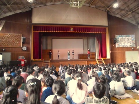 体育委員会の皆さんが、なわとびの扱い方をわかりやすく説明してくれました。
