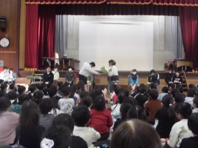 6年生が今年度の報告をし、5年生が来年度に向けての意気込みを語ります。