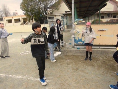 子どもたちにとっては、シャボン玉を飛ばすだけでも十分に楽しかったようです。