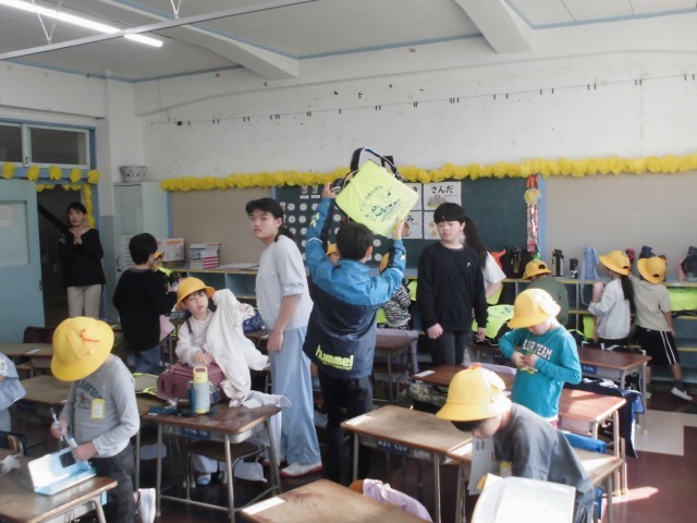 毎朝、6年生が1年生の朝の支度を手伝っています。