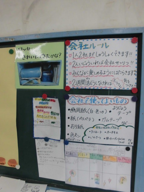 係の役割や使うものが分かりやすく示されており、子供たちが見通しをもって、楽しみながら活動できるようになっています。