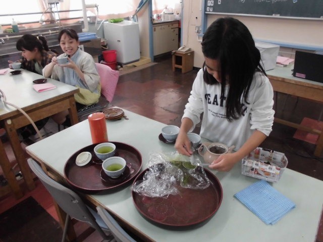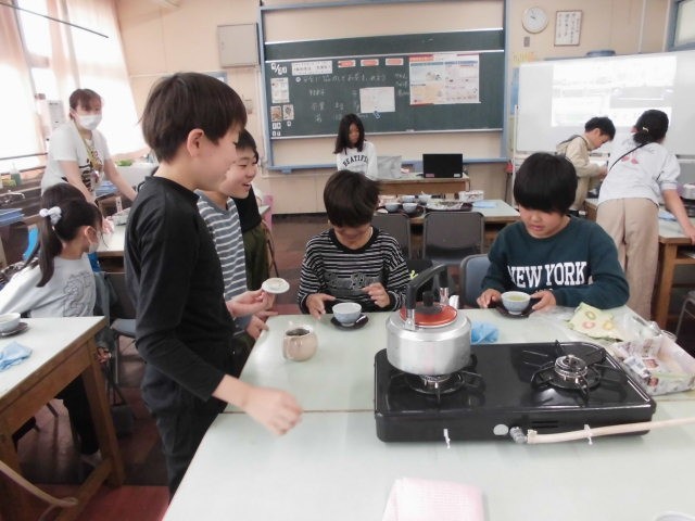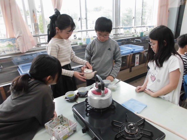 5年生の家庭科では、お茶の淹れ方を学習していました。