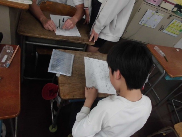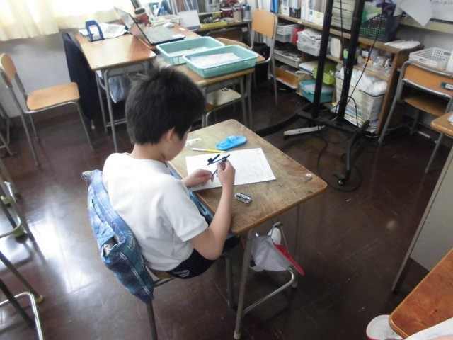 円や長さを正確に捉えながら、丁寧に図形を描いていきます。