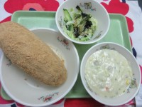 きなこ揚げパン、クリームシチュー、やさいサラダ、牛乳です。