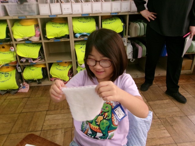 ハンカチでいろいろ工夫しています。みんなにも
