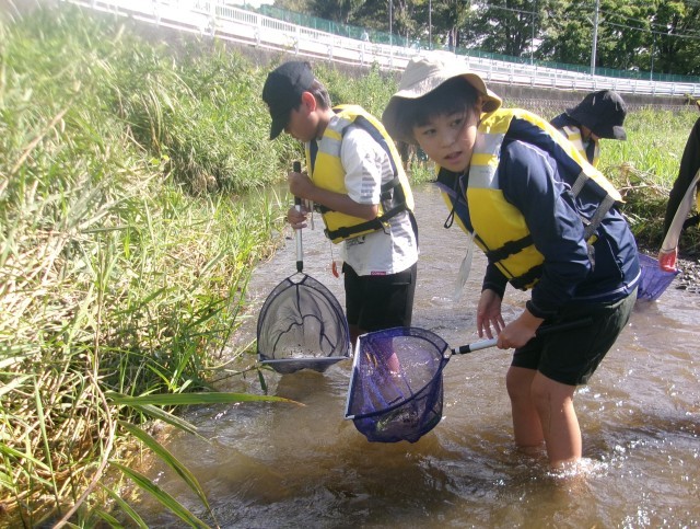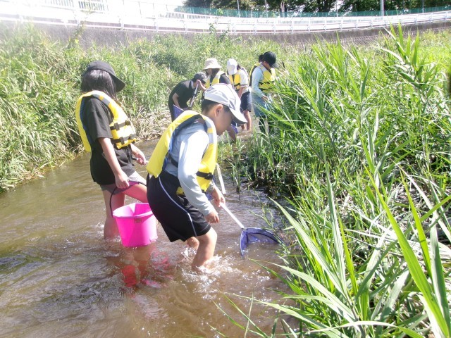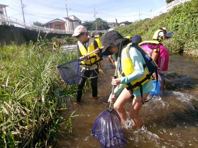 さっそくガサガサのスタートです。網を立てしっかり固定し、