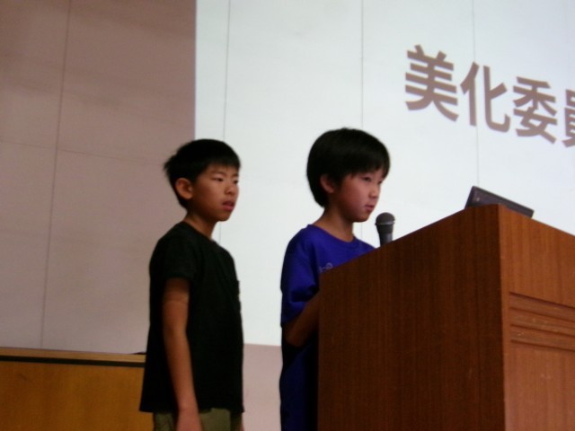今日は美化委員会の発表集会です。委員長さんのあいさつから