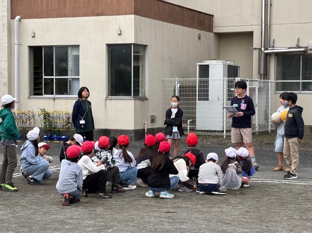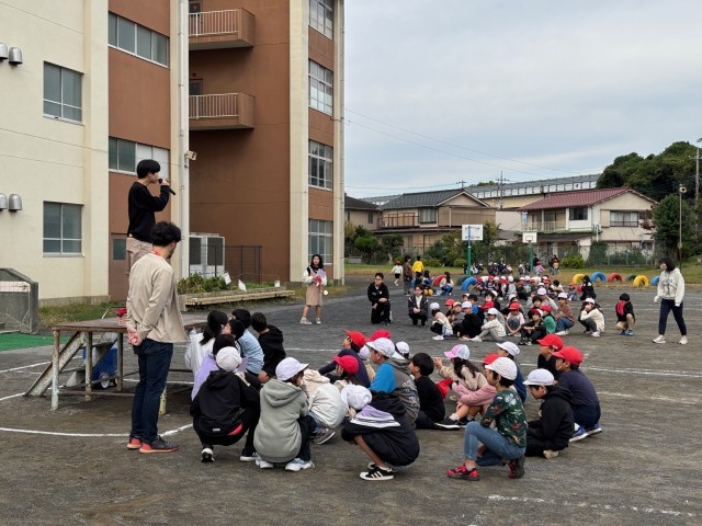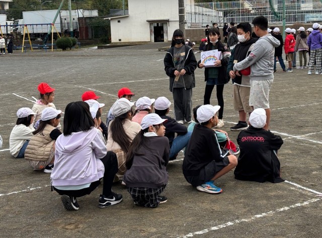 今朝はたてわり班集会です。一人一人名札をつけて、